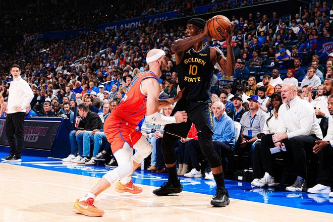 NBA常规赛继续进行,勇士奔赴客场挑战雷霆。OKC目前取得了2连胜,战绩高居联盟第1。此役,霍福德、梅尔顿伤停,斯蒂芬库里复出,并且携手德拉蒙德格林、吉米巴特勒、波斯特、库明加出任首发。杰伦威廉姆斯、多尔特、维金斯、肯里奇威廉姆斯伤停,雷霆的首发五虎是亚历山大、霍姆格伦、哈尔滕施泰因、华莱士与米切尔。库里与亚历山大的顶级后卫对决,是本场比赛的最大看点。首节开打,库里上篮得分,米切尔回敬三分球,霍姆格伦里突外投连得4分,库明加单打命中2球还以颜色。霍姆格伦、亚历山大与库里对射远投,库里上篮打进,哈尔滕施泰因暴扣,科尔请求暂停。